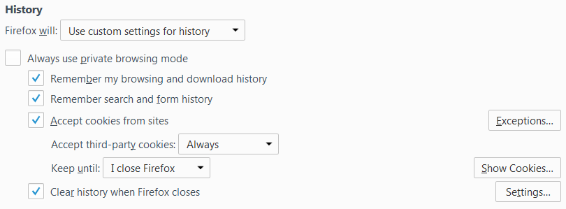 - Selectati Clear history when Firefox closes